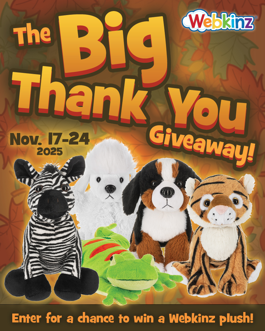 From November 17 to November 24, join us on Instagram for our Our Big Thank You Giveaway, where you could take home one of our newest (and cutest!) Webkinz plushies.