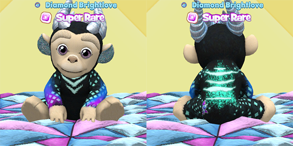 Speaking of cool, Chimpanzees with black body colors are the perfect backdrop for some intense traits! This lucky baby has a ton of super bright markings and then looks great with the Legendary Dragon horns and Vampire Kitten eyes. Another awesome Halloween pet!