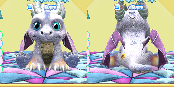 Last but not least, this icy Legendary Dragon has the Husky’s two-tone eyes and a Moon Bear’s starry back pattern. There’s a bit of fiery contrast with the back leg flames and the lava paws, and it’s all topped off with pretty purple wings!