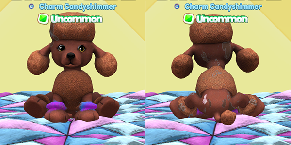 Normally I love the fun colors, but I really do like the chocolate poodle here! It’s got some interesting marks courtesy of the Moon Bear. The rainbow flair on the front legs look a bit like bracelets!