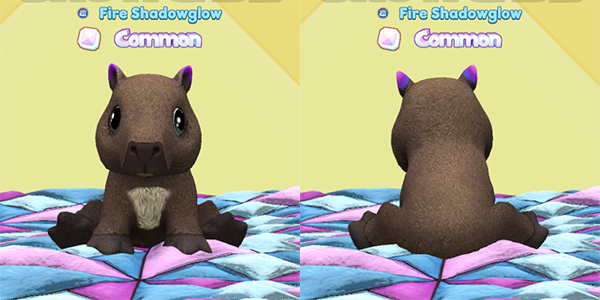 First up is this adorable baby Black and White Cat I sparked (two Capybara babies are further down). The Bengal Tiger’s fuzzy stripes head and the tiger stripes back are very subtle here, but I adore that cute little petal on the chest. I’ll be posting the spark traits for the next batch of five plush over the next few weeks, but this is a little sneaky peeky.