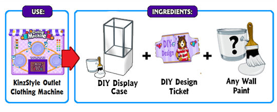 When you combine a special can of DIY Wall Paint with a DIY Display Case and Design Ticket on the Clothing Machine at the KinzStyle Outlet, you’ll create a display case that matches one of our room themes!