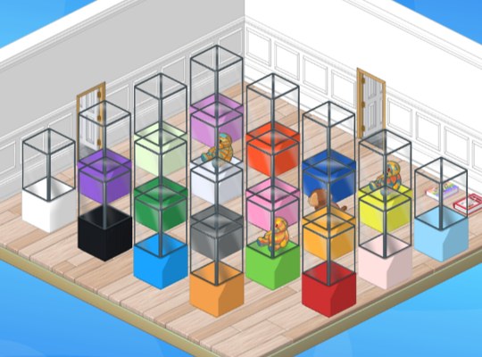 Drag a display case from your Dock, into your room to use it in a room design. Then you can drag a collectable from your Dock, into a display case to display it proudly in your room: