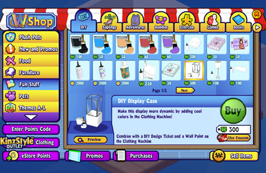The DIY Display Case, DIY Design Tickets and cans of wall paint will always be available to buy from the WShop for KinzCash, but we will be holding special DIY Paint Can events, where you can collect special cans of wall paint that match some existing room themes from the WShop and Curio Shop.