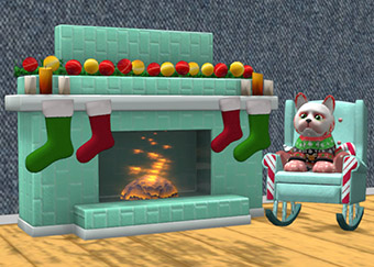 Keep warm this Season with this mint-green homey fireplace. Click on this item to turn the flames on and off.