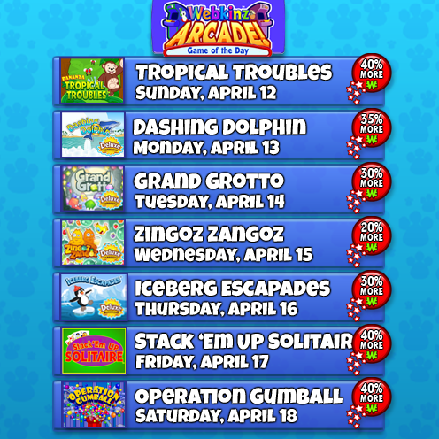 Welcome to our weekly feature, listing the GAME OF THE DAY in the Webkinz Classic Arcade each week!