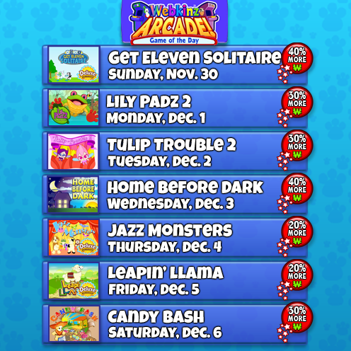 Welcome to our weekly feature, listing the GAME OF THE DAY in the Webkinz Classic Arcade each week!