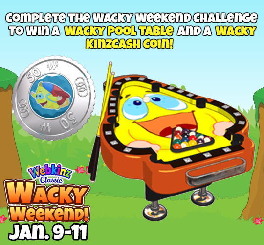 From Friday, January 9, to midnight, Sunday, January 11 (EST), players who manage to complete the Wacky Weekend Challenge will win a Wacky Pool Table and a Wacky KinzCash Coin!