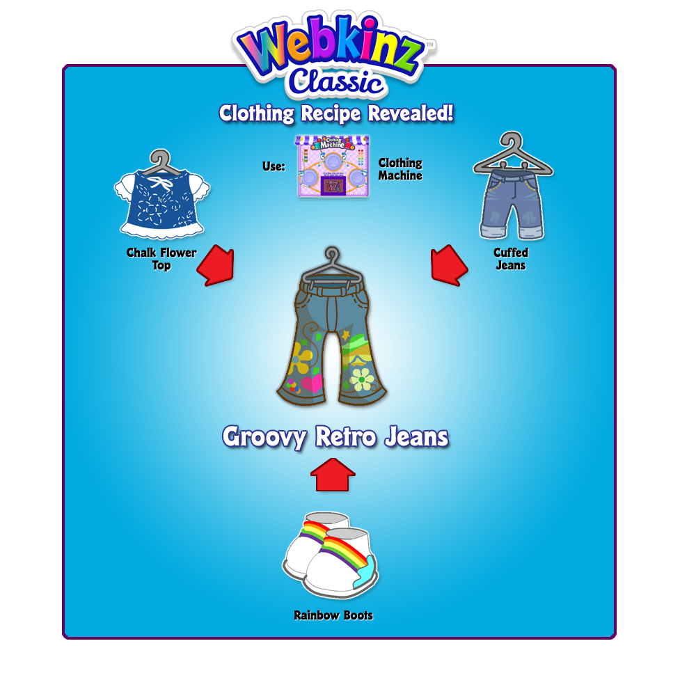 Just click on the Clothing Machine button in the KinzStyle Outlet (Webkinz Classic desktop app and web versions) and use these 3 clothing items to create this groovy garment!