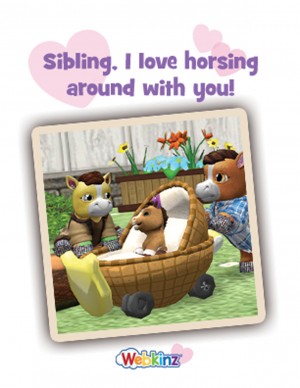 Simply click on the links to download your card, fold it vertically down the center, then horizontally down the center. Now you’re ready to show your siblings how much you love horsing around with them!