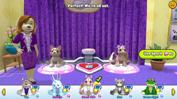 You can Spark your baby in the Adoption Center. This is where the magic happens! When you select two adult pets to Spark, their traits combine to create a brand-new baby.