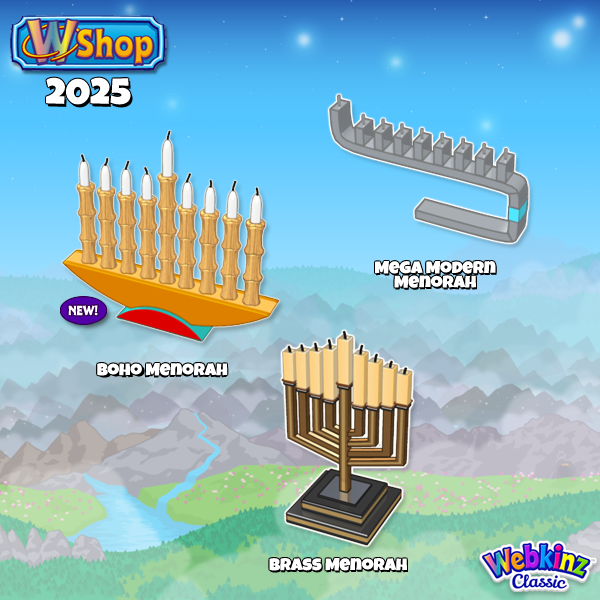 For those in Webkinz Classic that celebrate Hanukkah during the holiday season, there’s a NEW Boho Menorah you can pick up at the WShop until the end of December!