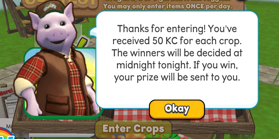 Winners will receive a message upon login the following day, along with their ribbon. Plus—your world name will be displayed at the Farmer’s Market on the next market day for everyone to see!