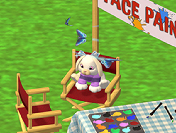 At the Facepainting station, you can apply a free effect to your pet. Click on the chair to get started. You’ll be asked to confirm that you want to apply the potion.