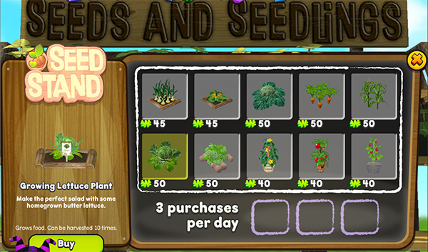 You can purchase up to 3 seeds at the Farmer’s Market. Some of these seeds are also available in the W Shop but they’re discounted here! There are several new crops to collect as well.