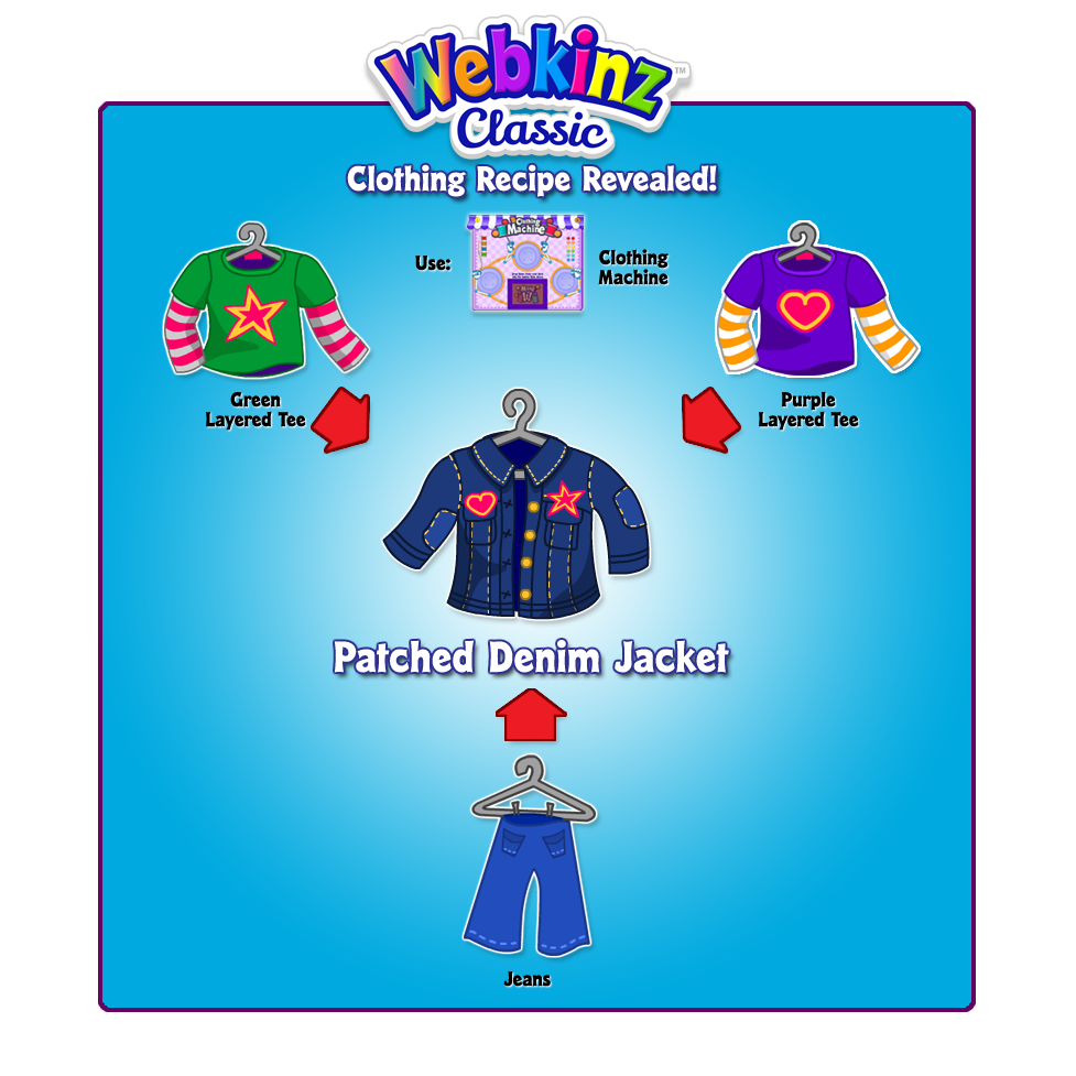 Just click on the Clothing Machine button in the KinzStyle Outlet (web or desktop app) and use these 3 clothing items to create your own Patched Denim Jacket!