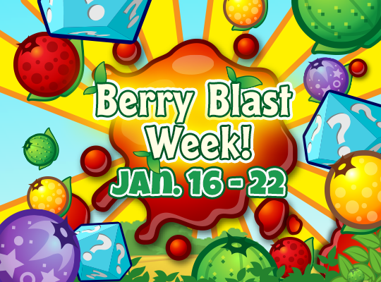 Earn a bonus free play of Jumbleberry Fields every day during Berry Blast Week which runs from Friday, January 16 to Thursday, January 22, on Webkinz Classic! Your bonus free play will be awarded as soon as you log in, and will be waiting for you to use at Jumbleberry Fields!