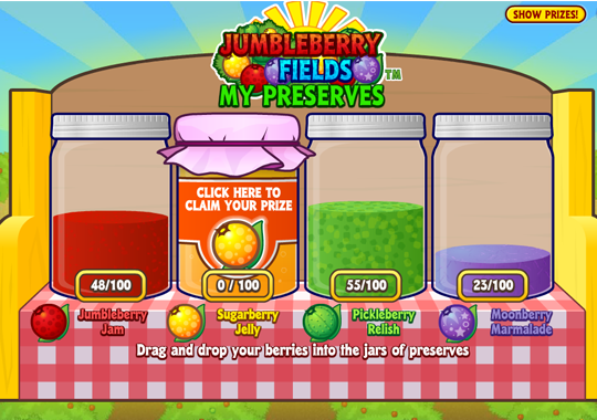 Every time you manage to fill up a jar of preserves, you can trade it for a prize!
