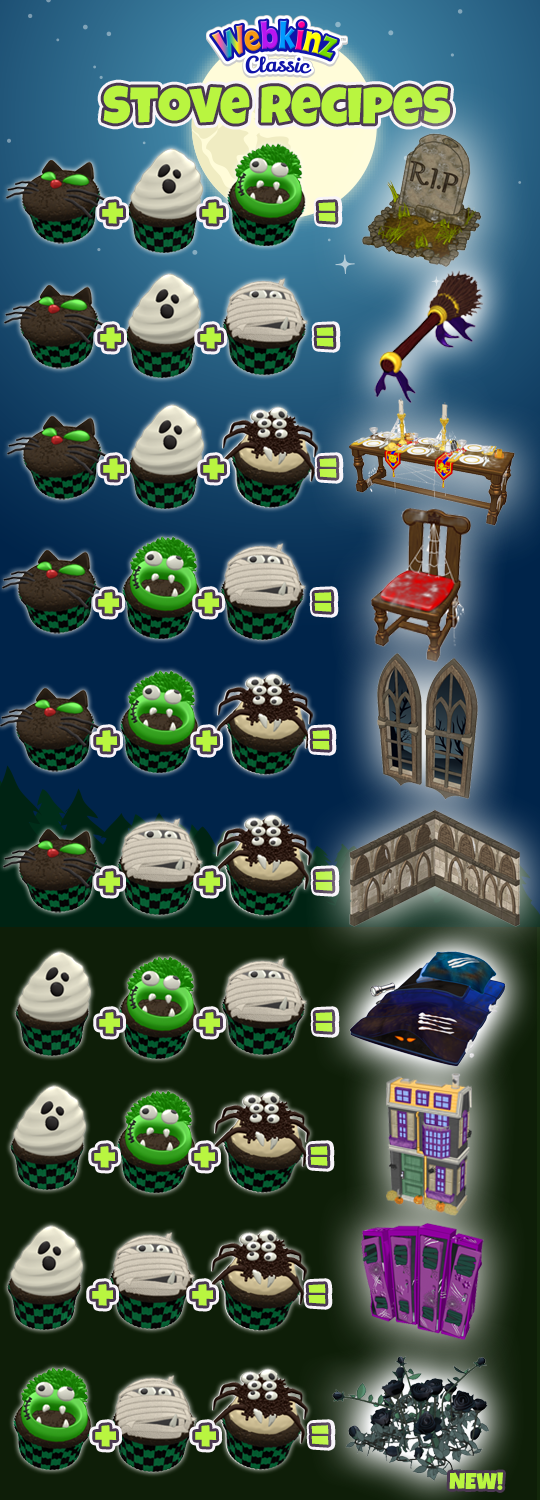 The Halloween Bale Sale is returning to Kinzville! From October 21 – 31, collect Halloween cupcakes on Webkinz Classic and combine them on a stove to make prizes!