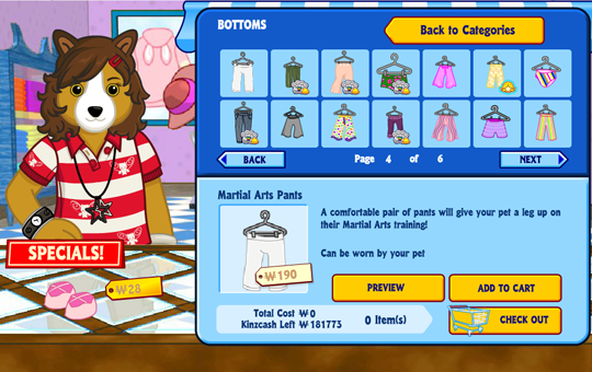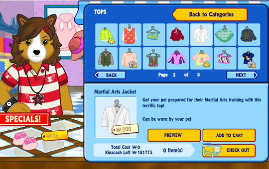 Remember, you’ll need to buy the Martial Arts Jacket and Pants to complete the first step of the Kinzville Martial Arts Challenge. You can find the jacket it the TOPS section of the KinzStyle Outlet: