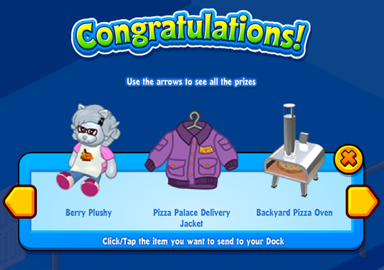 Drag the Pizza Party Gift Box from your Dock into your room to open it. Then, choose which prize you would like to keep: