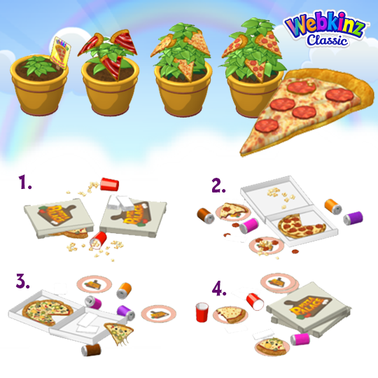 Drag a slice of Pizza from your Dock, onto your Webkinz to feed your pet.