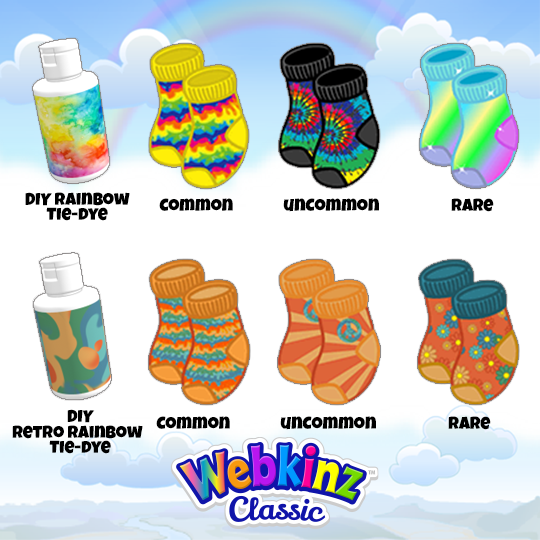 And, you can combine the new DIY Socks on the Clothing Machine with a DIY Design Ticket and bottle of tie-dye to make common, uncommon or rare DIY socks.