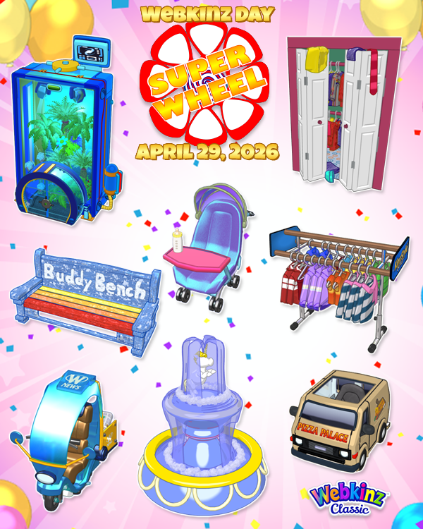 Which prizes do YOU want to win on the Webkinz Day Super Wheel? Let us know in the comments below!