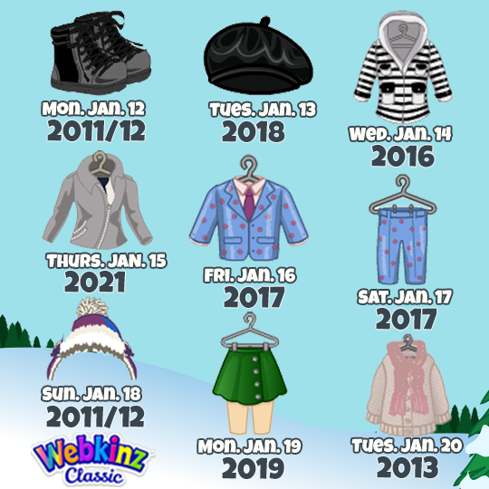 Log in to your Webkinz Classic account to get a free piece of retired winter clothing every day. It will automatically be added to your account as soon as you log in!