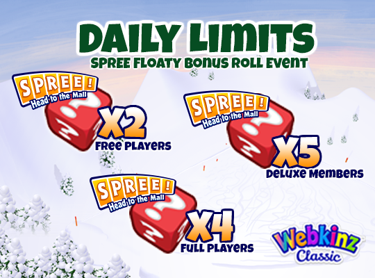 You can also look for floating Spree dice during the Winter Shopping Spree. If you see a die floating across your screen, click on it, and you will be able to use it the next time you play Spree at the Games Arcade.