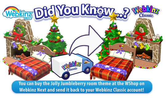 The Jolly Jumbleberry theme is also available at the WShop on Webkinz Next until December 31. You can purchase this theme on Webkinz Next and send it back to your linked Webkinz Classic account!