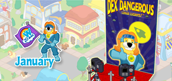 - We are also running a NEW Webkinz Host challenge, this time with Dex Dangerous, starting on THURSDAY, JANUARY 1ST! If you complete all the tasks before the end of January, you’ll receive a Movie Star Candy Bar, along with a NEW Dex Dangerous Red Carpet!