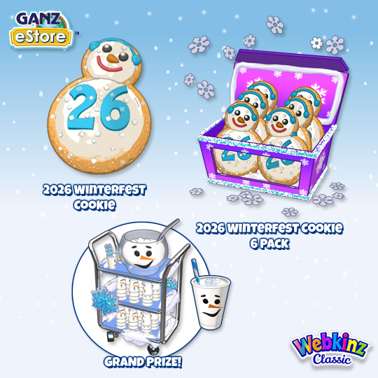 - Also starting in January, you’ll be able to get 2026 Winterfest Cookie 6-Packs from the Ganz eStore, or from the WShop for eStore Points! Once you open the packs, you can feed the cookies to your pets to win some wonderful NEW 2026 Winterfest prizes, including a chance at this year’s GRAND PRIZE: a Snowman Punch Dispenser!