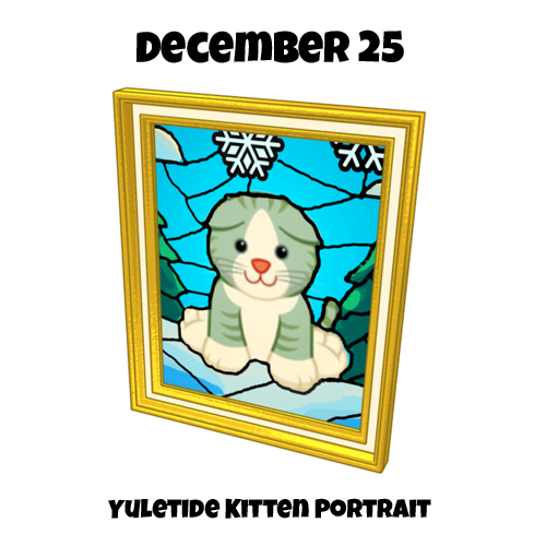 - If you’ve adopted a Yuletide Kitten from the Ganz eStore, make sure you visit the Today’s Activities schedule on Christmas Day to click on and receive a Yuletide Kitten Portrait! It’s a great way to celebrate this pretty kitty!