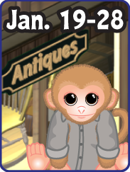 - One of my FAVORITE Clubhouse rooms—the Antique Shop, returns starting on Monday, January 19th and running until Wednesday, January 28th! Go visit the Baby Monkey curator in the Antique Shop, who each day is giving away one random Winterfest prize from the past! There are all sorts of cool prizes to collect!