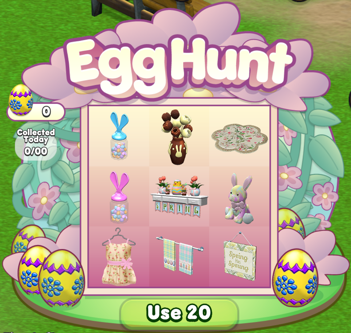 Play in the Park or chat with other residents while you wait for Spring Celebration Eggs to fall from the sky.