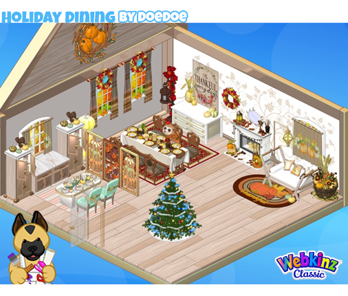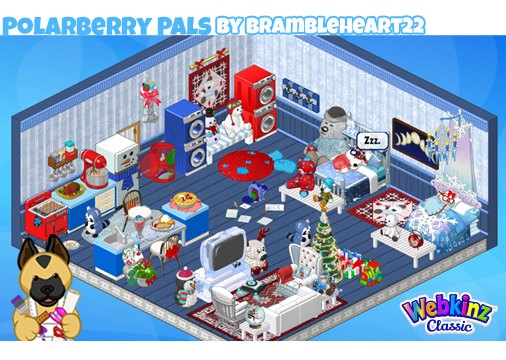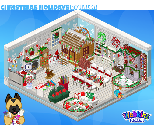 The Merry Mid Century room theme is available at the WShop until December 31, on Webkinz Classic, and the Jolly Jumbleberry room theme is also available until the end of the month on Webkinz Next. Send me your holiday room designs for thee chance to be featured on Webkinz Newz! You can find my email at the bottom of this post.