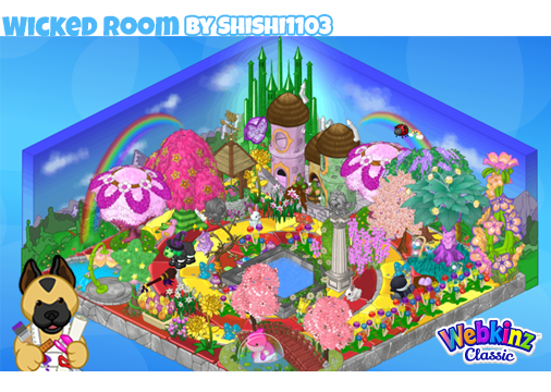 That room caught my eye too, and I’d love to try it! I’m assuming certain colors are a factor to pull off the optical illusion ~ light as opposed to dark to raise the corner up and make it look higher. I also really loved the Wicked room and it made me want to cry with joy! I am so glad that Shishi1103 took the time to make it and submit it to Michael Webkinz!