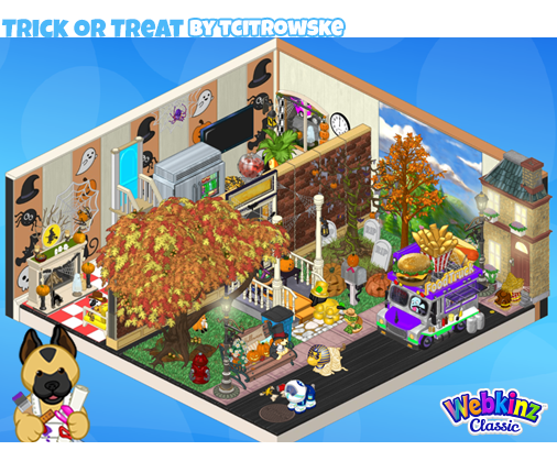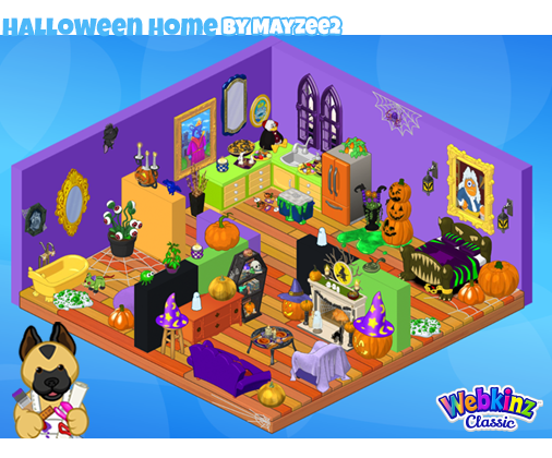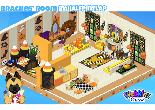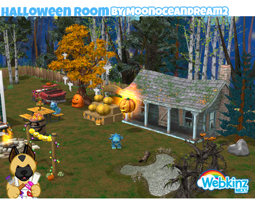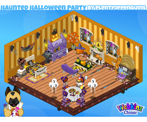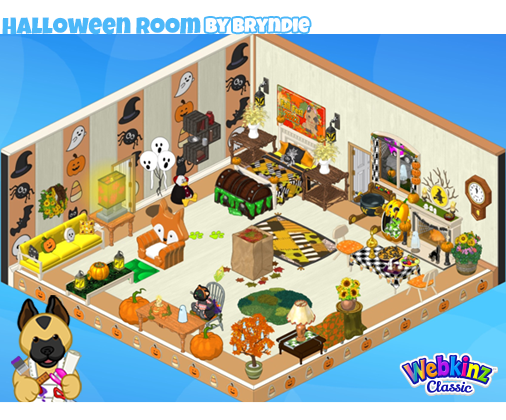 Halloween is only a few days away, so today I’m featuring twenty Halloween room designs from Webkinz Classic and Webkinz Next! I’ll be announcing the finalists for the latest Room Design Awards next month, so these designers have the chance to make the list!