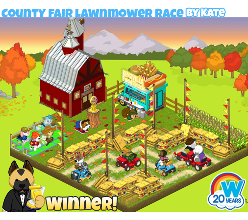 “The County Fair Lawnmower Race by Kate is fun idea that’s expertly executed! I’m really impressed with all of the small details required to pull this scene off, including the pets in their autumn outfits, the tangled hay-lined track, and even having to wait for the Fall outdoor season to appear before capturing the perfect screenshot! This finalist made it to finish line for me!”